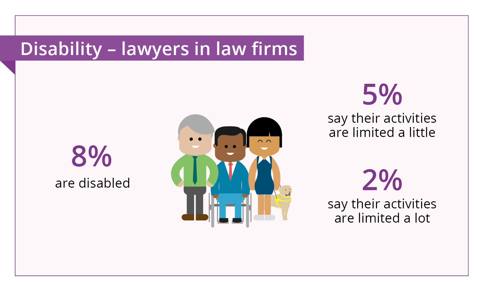 - 8% of lawyers declared they had a disability and 5% preferred not to say.